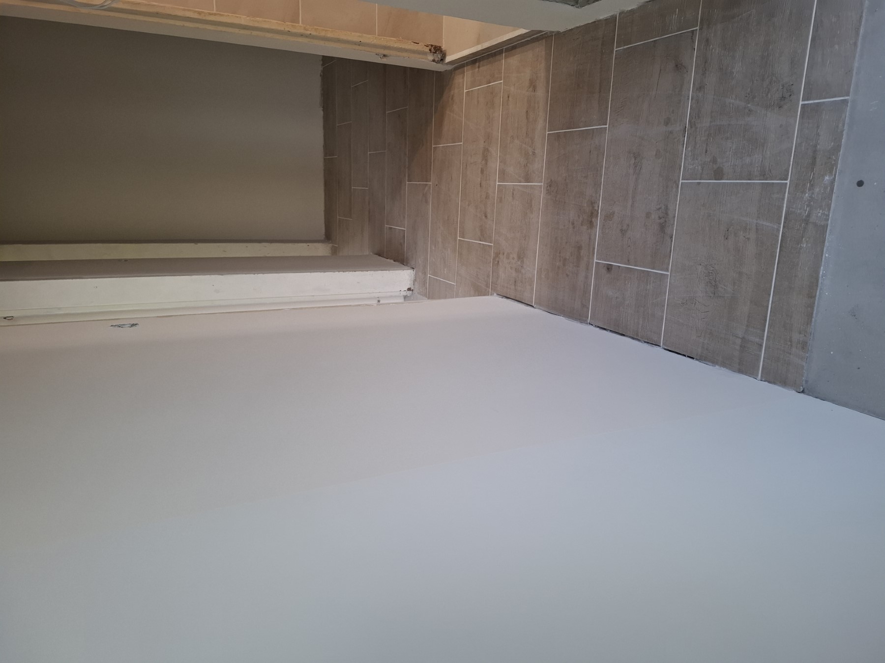 Полагане на изравнителна замазка, шумоизолация, подово отопление (ако е предвидено) и подготовка за плочки, ламинат или паркет.